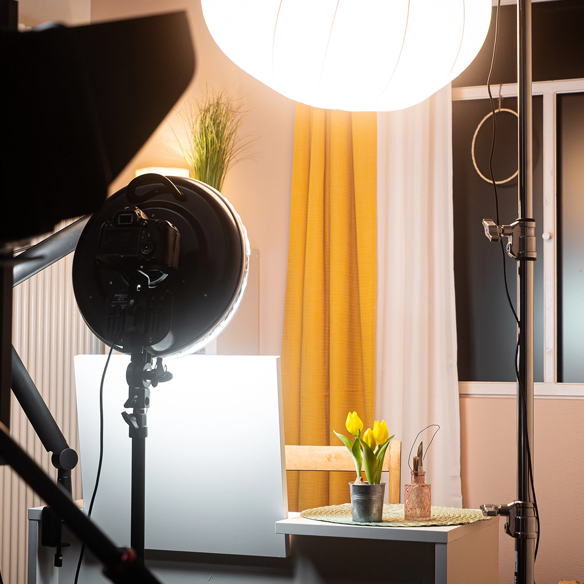 Unser professionelles Mietstudio für Foto- & Videocontent bietet Raum für kreative Ideen und professionelle Produktionen. Von Produktvideos und Social Media Content bis zu Podcasts und Musikvideos – bei uns findest du den Raum, der genau zu deinem Projekt passt. Unsere Experten stehen dir mit Rat und Tat zur Seite, sodass du dich ganz auf deine kreative Umsetzung konzentrieren kannst.